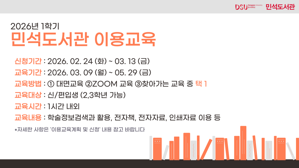 | 2026-1학기 민석도서관 문화예술프로그램 안내 (0) | 2026.03.03 |